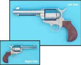 重厚なノンフルートシリンダー、背中が大きく丸まったバードヘッド(鳥の頭)の木目調プラスチックグリップ、トリガーガード&バックストラップは真鍮製を装備。