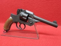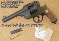 二十六年式拳銃とは、日本軍が明治26年(1893年)に制式化した日本独自の回転式拳銃で、明治、大正、昭和と激動の時代を生き抜いた。口径:9mm、装弾数:6発、ダブル・アクションのみで分解には特別な工具が必要なく、トリガーガードを下げサイドプレートを開くことで簡単なメンテナンスが出来る独特のメカニズムを持ったリボルバーであった。開発当初、拳銃を主装備とした騎兵科の使用を見込んだリボルバーで、馬上で操る為、狙撃能力は必要ないとの判断から、S/A機能および撃鉄の指かけ部が削除されてD/Aのみとされ、照準は固定式で中折れ式でテイクダウンするとエキストラクターがせり出してて排莢する独特な構造を持つ。騎兵はこの二十六年式が開発された頃から、戦場の様子が陣地構築と機関銃の登場によりその姿を大きく変え、急激にすたれていく運命にあったが、馬上で二十六年式拳銃を全弾発射後、テイクダウンして撃発後のカートリッジを素早く排莢し次弾をクリップでまとめたカートリッジを給弾する馬上の騎兵の雄姿が目に浮かぶ中折れ式回転式拳銃である。二十六年式拳銃は騎兵科の衰退後もシンプルな構造で故障が少なく操作も簡単で、製造コストも安価であった為、太平洋戦争の終結まで使用された。