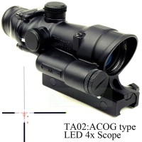 Trijicon社が製造するLED発光4倍スコープ ACOGの TA02のレプリカで レティクル発光の電源として単三電池を採用したモデルを再現した商品。