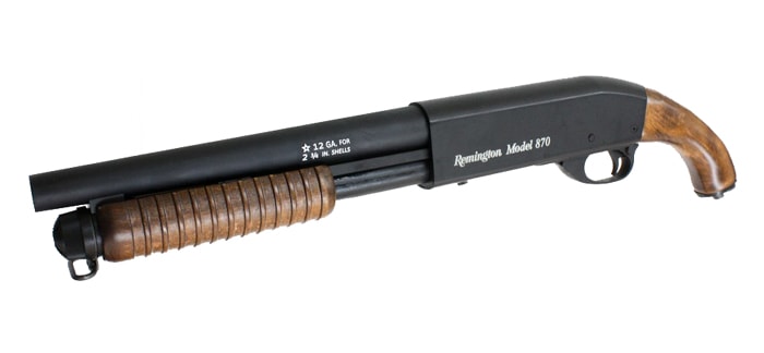 さてモデルとされた、実銃のポンプアクション式ショットガンの代表機種としてその名を知られるレミントンM870は、1966年に開発されたモデルで、民間のスポーツ用から軍隊、警察用として長年に渡って使用されており、その信頼性の高さと堅牢性には定評がある。