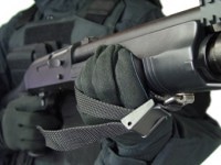 ストラップを手に絡めてコッキングすることで重いコッキングが格段に楽になり、