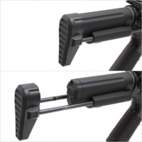 コンパクトながら強固な剛性を持ち安定感ある2段階に伸縮可能なコンパクトサイズのKRYTACコンパクトカービンストックを装備し、別売りLIPO7.4Vのミニバッテリータイプを収納可能。
