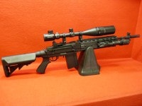 精度が良く射程の長い戦場での使い勝手の良いM14を、現代戦にあわせてモデェファイしたカスタムスナイパーのEBRは、短縮されたフロント部分に拡張性アップの為のピカティニーレールが4面装備され、ストックはエンハンスドストック等の伸縮式が装着されている。