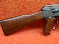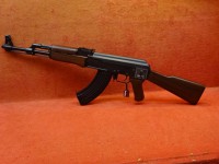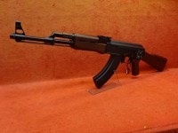 次世代電動ガン化にあたり、新たに無可動実銃を購入し、あらゆる角度より検証し造形をモデリング、さらにカラーリングもスチールのざらついた感じを再現すべく新塗料のデフリックコートを採用(もっともレシーバー等は金属ですが・・・)、ストックもより赤みのある木目調仕上げを再検討により、全体の質感とリアル感がぐんーと増したAK47となった。