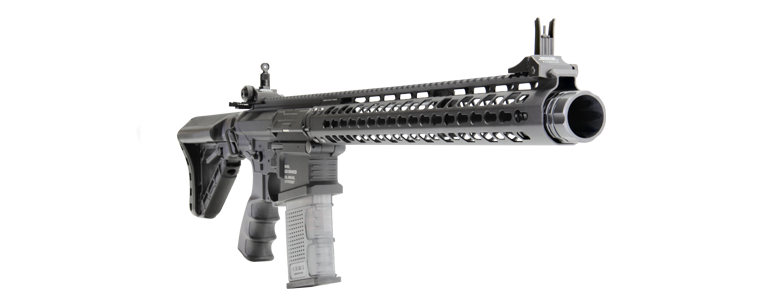 7.62mmx51NATO弾を使用するAR-10/SR-25シリーズのデザインで、前作の556シリーズより明らかに強力でパワフルなデザインでありながら、軽量/スリムかつ拡張性にも優れたKeyModハンドガードを採用したことにより重量の増加も抑えられ、操作系は全てアンビデクストラス(左右両利き)仕様となっている。