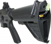 このS&Tモデルはスポーツモデルラインなので、RASハンドガードとバッファーチューブはナイロンファイバー樹脂、レシーバーはポリカーボネート樹脂、アウターバレルは、アルミ合金(マズルは14mm逆ネジ、メカボックスはVER2、別売りバッテリーはセパレートミニ。