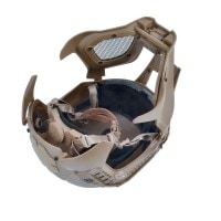 スターウオーズの賞金稼ぎのボバ フェットを彷彿とさせるメカニカルで威圧的な外観を持つヘルメットだ。