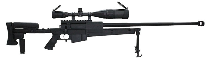 • 全長:約 1,230mm/980mm(ストック折りたたみ)、重量:約 6,800g、装弾数:19+1発、発射方式:ガス式ボルトアクション、ストック:約60mm 無段階伸縮可能、チークピース:約15mm無段階上下調整可能、バイポッド:6段階 伸縮可能、モノポッド:約65mm 無段階伸縮可能