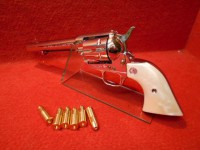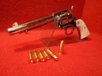 バレル・フレーム・シリンダーはABS樹脂にクロームシルバーメッキ、トリガーガードは亜鉛ダイキャストにクロームステンレスメッキ、アイボリー調プラスチックグリップ、発火カートリッジ6発付属。