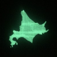 説明:太陽光や蛍光灯などから光エネルギーを吸収して暗闇の中で発光します。(北海道の写真は蓄光時の見本です)
