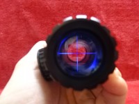 イルミネーションカラーは見やすいブルーレティクル、上下左右調節ノブはフィンガータイプのキャップレス。