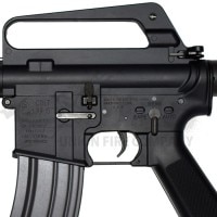 メタルレシーバー上下と一本物のメタルアウターバレルで構成された剛性の高い精緻な造形のXMで、パーカライズドブラストカラーに染め上げられている。ETUと電子トリガーを搭載し、驚異のセミオートのレスポンスを実現した。