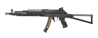 AK74を近距離射撃や室内戦闘に適した反動が少なく跳弾の危険が少ない9mmパレベラムとしたM-LOK仕様の現代的なモデルだ。
