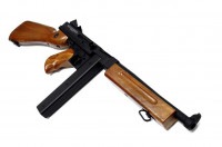 実銃のトンプソンは、1921年に完成した45ACPを1秒間に12発も発射する、当時の形態 小火器の中では圧倒的な攻撃力を持つ物であった。その後小改良を重ね、1942年に米 軍に正式採用された量産型がトンプソンM1A1である。