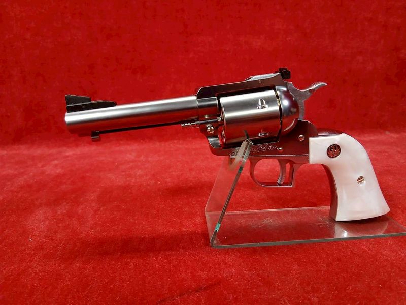スーパーブラックホークはスタームルガー社のシングルアクションリボルバーのブラックホークのの強化版で44マグナム等の強力なカートリッジに対応するためにシリンダーもノンフルートタイプが採用されている。