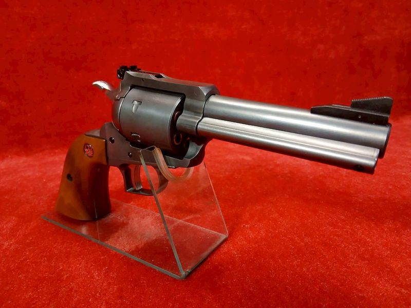 スーパーブラックホークはスタームルガー社のシングルアクションリボルバーのブラックホークのの強化版で44マグナム等の強力なカートリッジに対応するためにシリンダーもノンフルートタイプが採用されている。