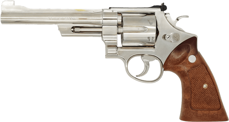 タナカの発火型モデルガンS&W M27 “he .357 Magnum 6インチ ニッケルフィニッシュ。