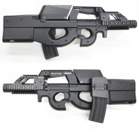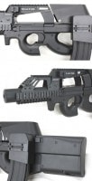 レイルハンドガードとロングサプレッサーで近未来的な拡張性の高い機体となり、P90電動ガンのオリジナルの少し給弾性能が低いマガジンから給弾信頼の高いM4サイドマガジンとなっている。