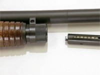 さてM37は1880年創立の米国イサカ社の最高傑作で、「羽のように軽い」というネーミングのこのモデルでした。レミントン、ウィンチェスターとは違う独自のポンプアクション機構で、特にその軽さと実用性で、M37として米軍制式採用されました。このポリスモデルはロウエンフォーサーオンリー(法執行官専用)として、警察関係に売られたイサカM37の最終モデルです。KTWはこれを忠実にエアーソフトガンとして再現しました。ポンプコッキングは軽い引きで長大な弾道を得れる軽快なもので、銃身下にある三角形のパーツ下部のボタンを押すと、カセットマガジンが引き出せます。