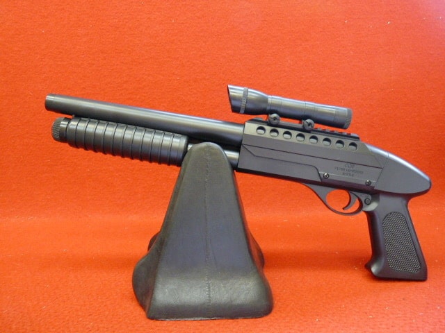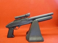 0.12〜0.15gのBB弾対応で、ホップチャンバーで30mの飛距離を持つ。イサカM37ソードオフモデルをモチーフにして製作されたポンプアクションショットガンだ。