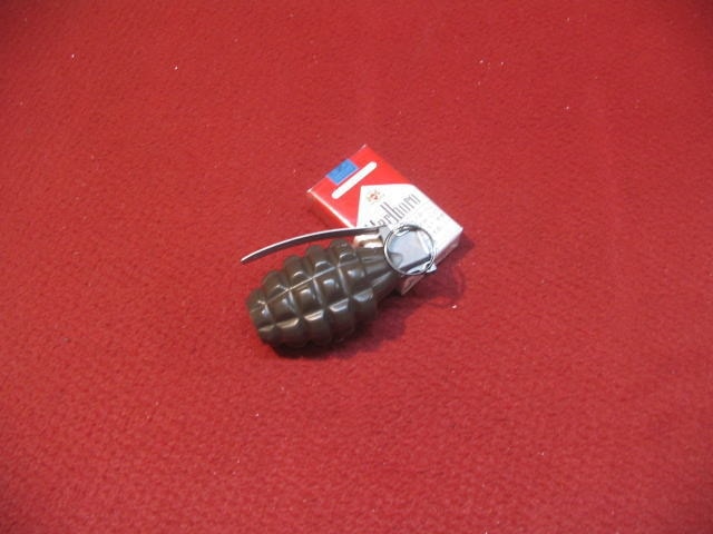パイナップルと称されるMK2型手榴弾の形をした、発火モデル、5mmキャップをセットしてプルリングを外し投擲すると、着地のショックでセーフティーレバーが外れバネ仕掛けのハンマーがキャップ火薬を撃発して爆発音を上げる。