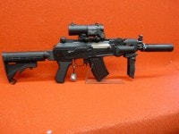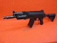 また外観も、フィールドでの取り回しの良いショートフォルムと伸縮M4ストックを装着したPMC風スタイルで、アッパーデッキに光学機器搭載用のトップレールが装備されたセミグロスブラックの精悍なボディを持つ、モダンモディファイされた拡張性・戦闘力の高いショートスパルタンAK47だ。